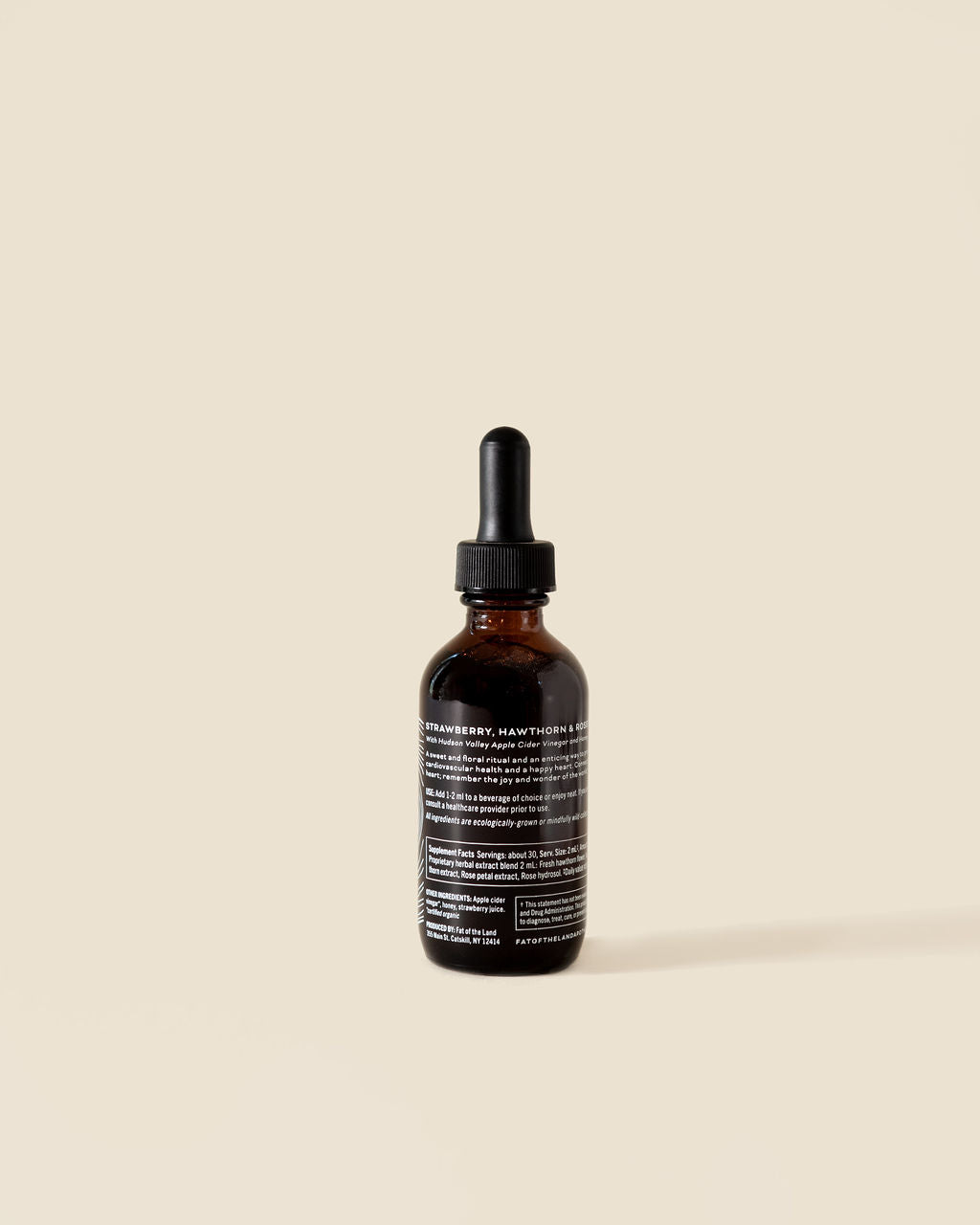 apple cider vinegar, honey, strawberry, extract of fresh hawthorn flower, leaf, berry & thorn, rose petal extract, rose hydrosol