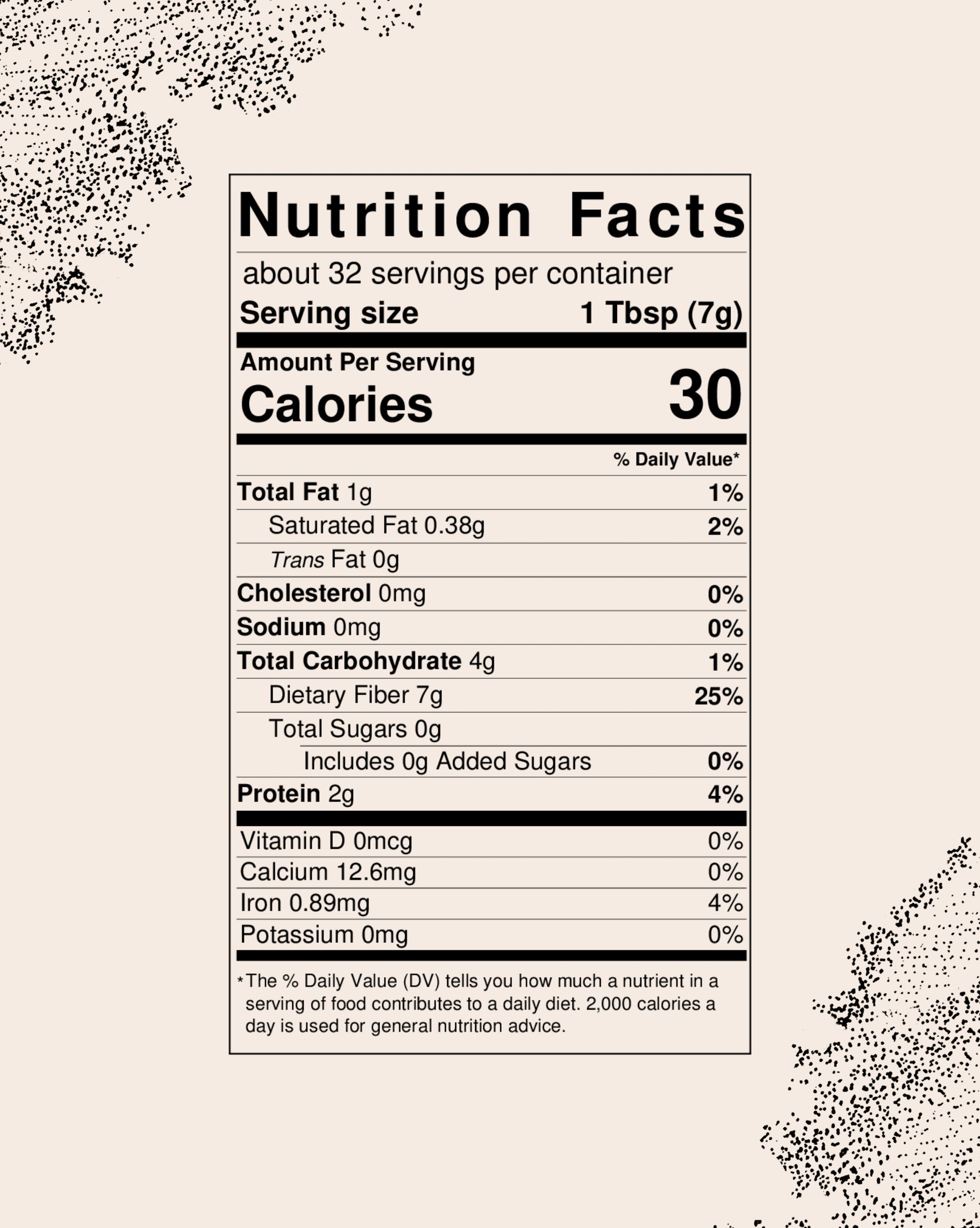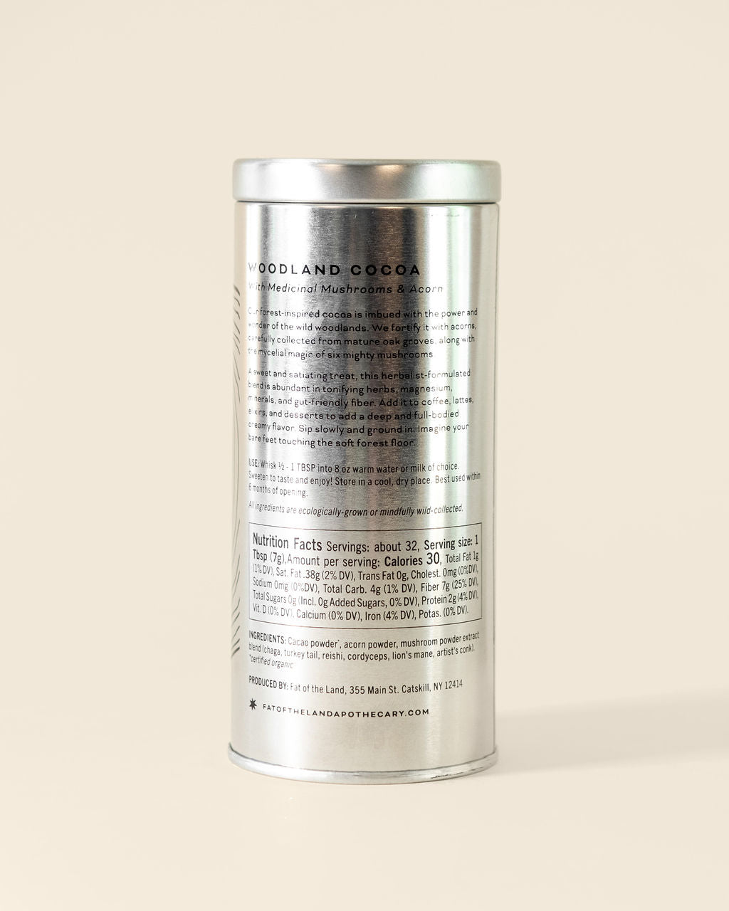 cacao powder, acorn powder, mushroom powder extracts of: chaga, turkey tail, reishi, cordyceps, lion's mane & artist's conk